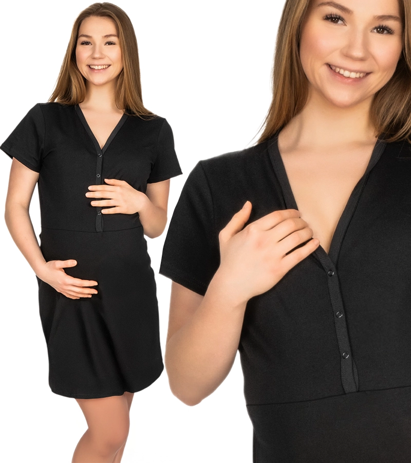 Koszula nocna do karmienia do porodu i szpitala – krótki rękaw – rozpinana – BENSINI