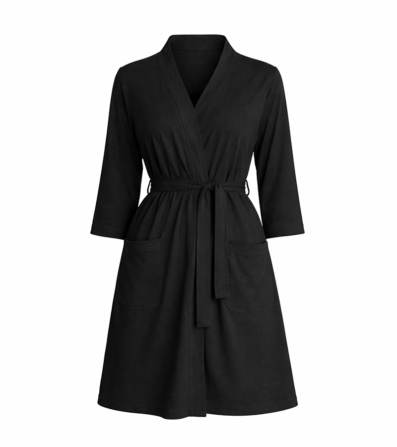 Szlafrok damski z kieszeniami – czarny, do szpitala