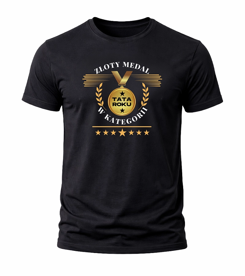 Czarny T-shirt męski – Złoty Medal „Tata Roku”